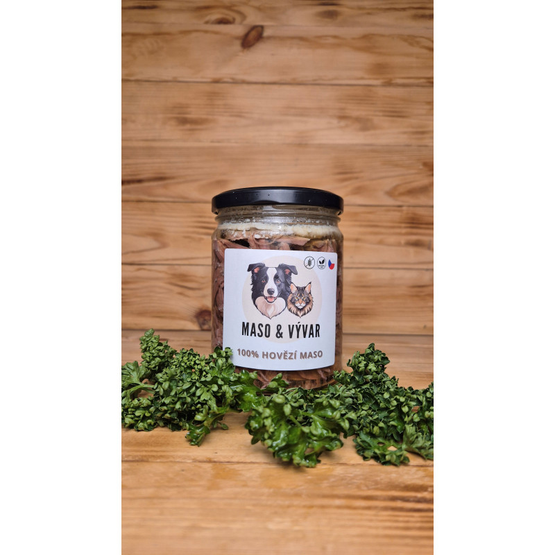 - Složení: Hovězí maso, hovězí vývar, přírodní kolagen, zcela bez chemie